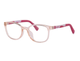 A armação em material injetado na cor coral translúcido traz leveza e flexibilidade, ideal para o uso contínuo. O formato phantos oferece um visual atual e versátil, enquanto as hastes em tons lilás e rosa adicionam um toque lúdico e delicado.
