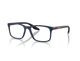A armação em fibra de náilon injetado na cor azul fosco garante leveza, resistência e conforto prolongado. Seu formato retangular com cantos arredondados proporciona um encaixe versátil e elegante, especialmente indicado para rostos ovais, coração e quadrados.